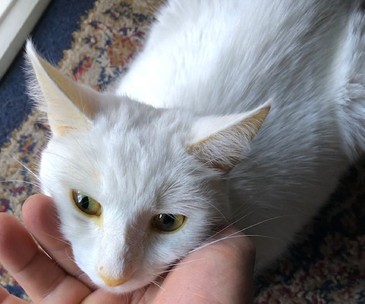 An unfortunate post script. Phantom died on 17 July 2025 after a 7 week battle with what was believed to be an Autoimmune Anaemia - though the symptoms (which included a fever and anorexia) indicated it was instead Infectious Anaemia (alternately known as "Feline Hemotropic Mycoplasmosis" or "Haemoplasmosis"). This would usually prove fatal only when a cat's immune system is compromised. As the treatment for Immune Mediated Hemolytic Anaemia (IMHA) involves suppressing the cat's immune system with steroids, it proved fatal to our very sad sick purring boy. Left, a severely jaundiced Phantom 2 days before his death. A blood transfusion, antibiotics and stopping the steroids could likely still have saved him.